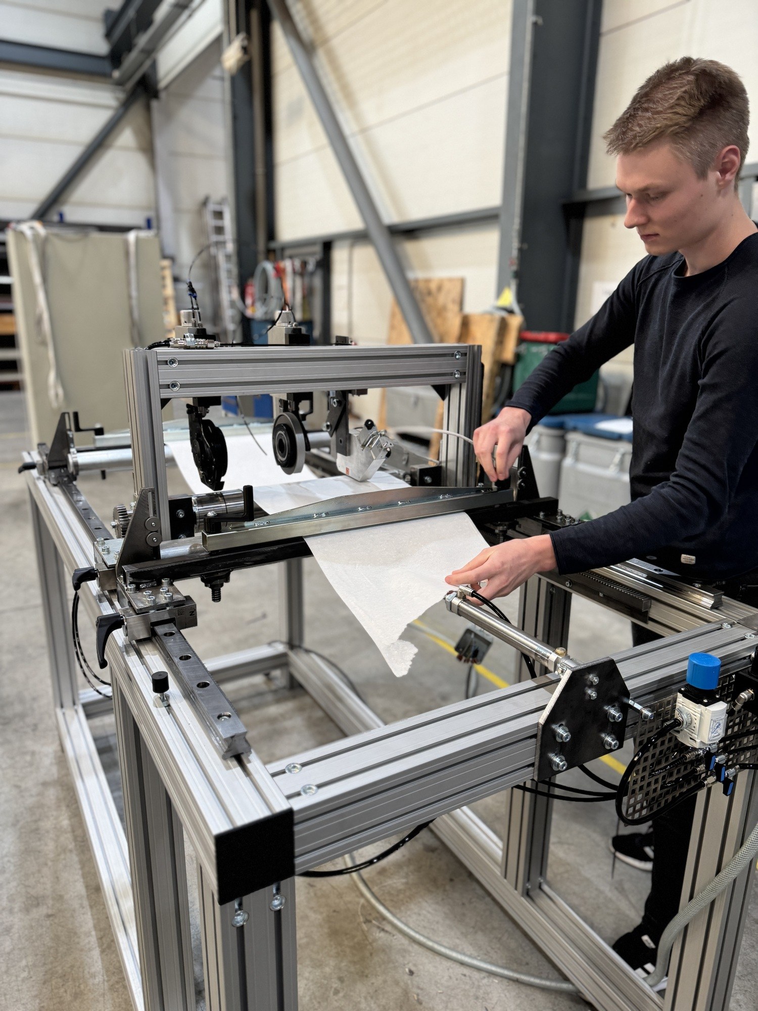Das Testmaterial kann Abmessungen von bis zu 500 mm x 1450 mm aufweisen. Eine pneumatische Spannvorrichtung sorgt für eine präzise und reproduzierbare Fixierung des Materials mit individuell einstellbarer Zugkraft - eine wesentliche Voraussetzung für belastbare Versuchsergebnisse.