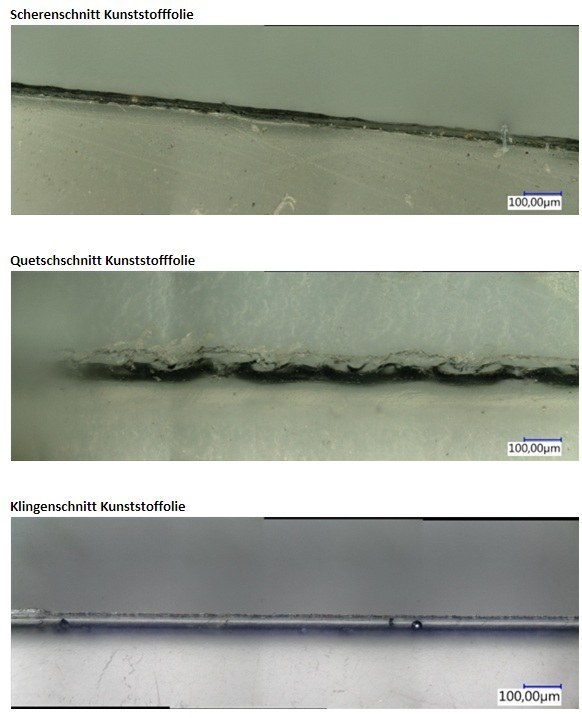 Die entwickelte Versuchsstation dient zur Analyse der Schneidbarkeit verschiedenster Materialien und erlaubt den direkten Vergleich mehrerer Schneidarten:- Klingenschnitt