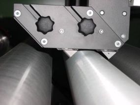 Beim Klingenschnitt wird die Warenbahn mit einer Industrieklinge längs geschnitten, um sie zu konfektionieren.